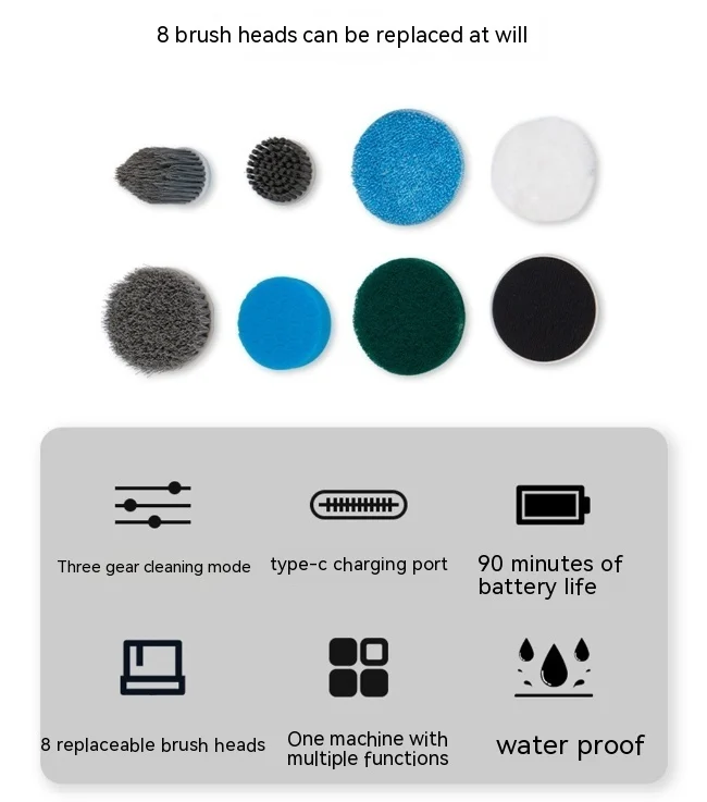 Host * 1 Telescopic pole * 2 Big flat brush * 1 Sponge * 1 Imitation wool fabric * 1 Small flat brush * 1 Mop * 1 Fixed disk * 1 Pointed brush * 1 Polishing brush * 1 Small cloth * 1 Storage bag * 1 Type-C charging cable * 1