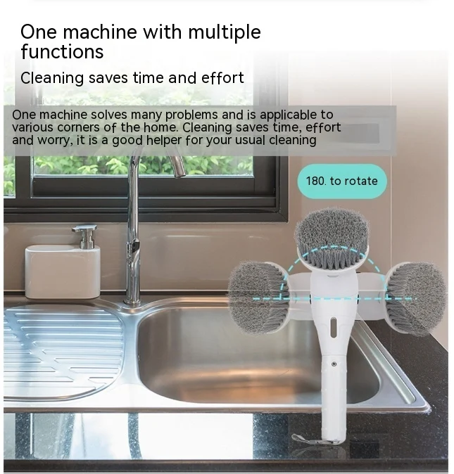 Rotating Night Light Multifunctional Waterproof Wireless Cleaning Brush
